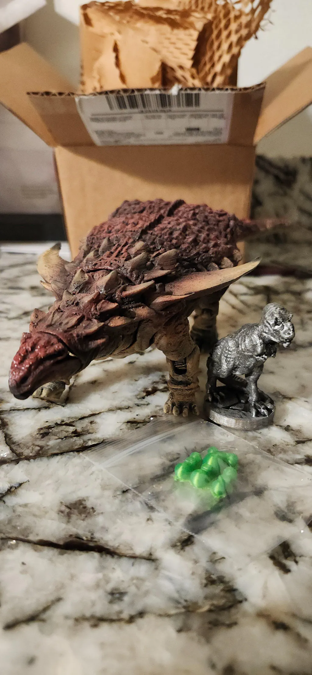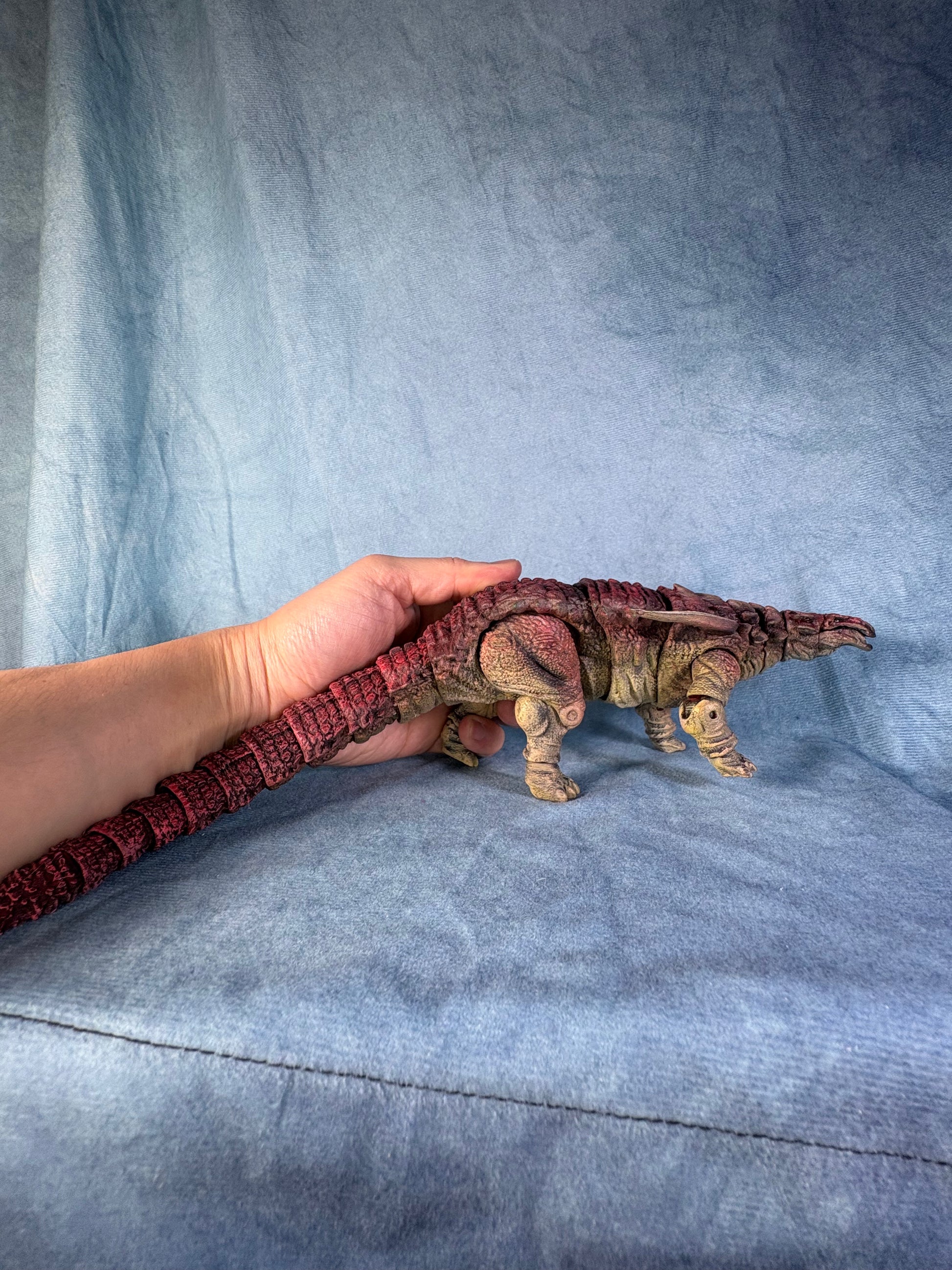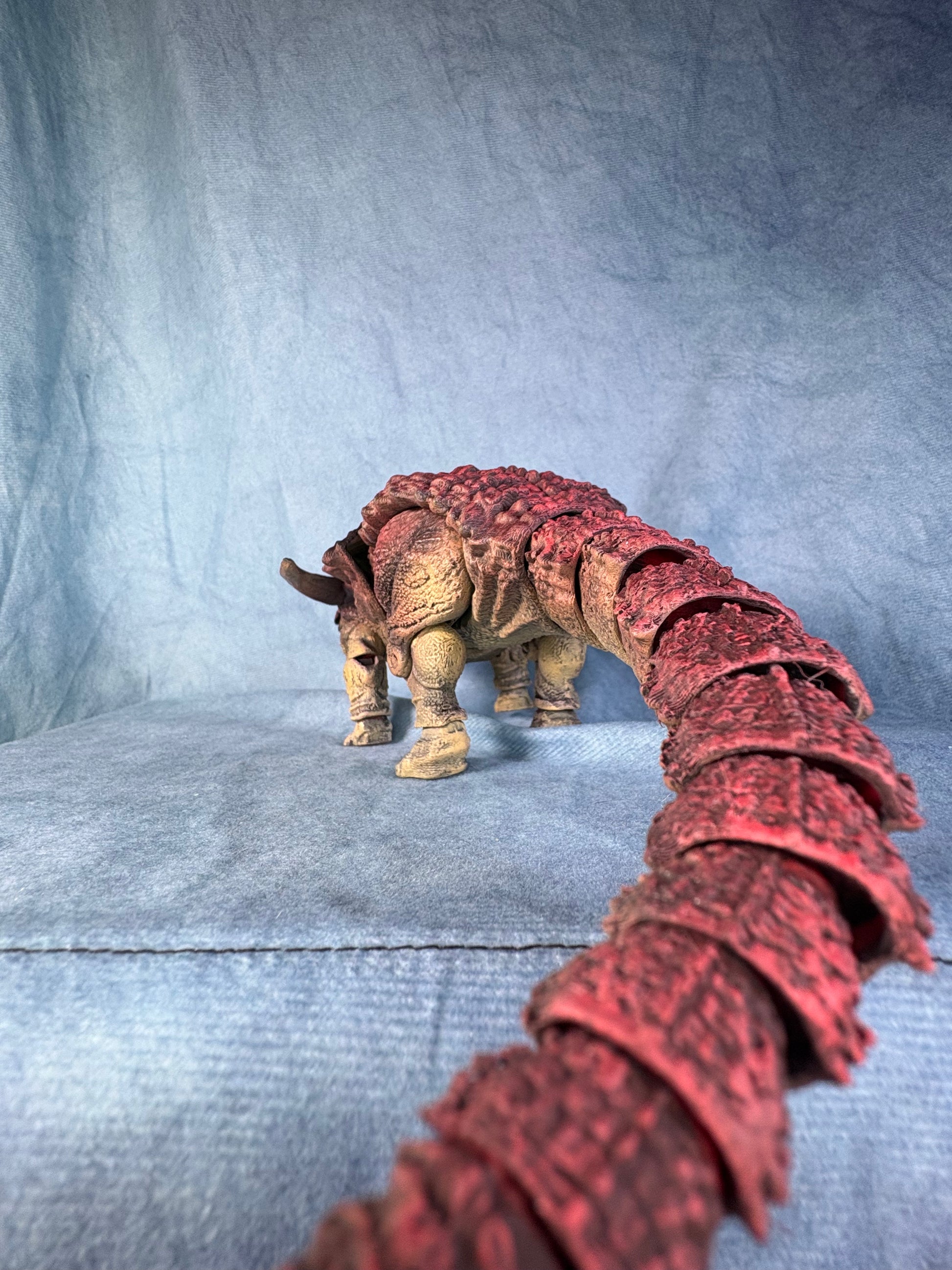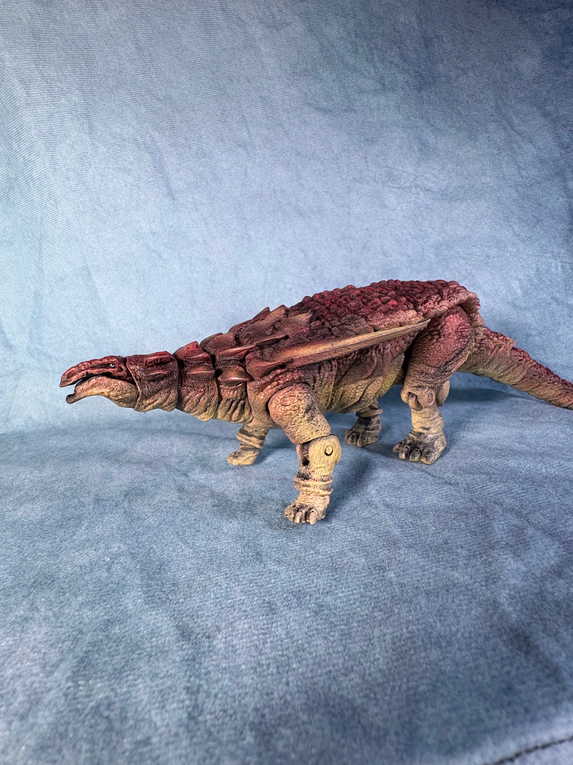 One of the first two official releases from the 23 Series line. It’s a Borealopelta modelled after that famous mummy dinosaur. Features a generous amount of articulation, and painfully assembled and painted by me.